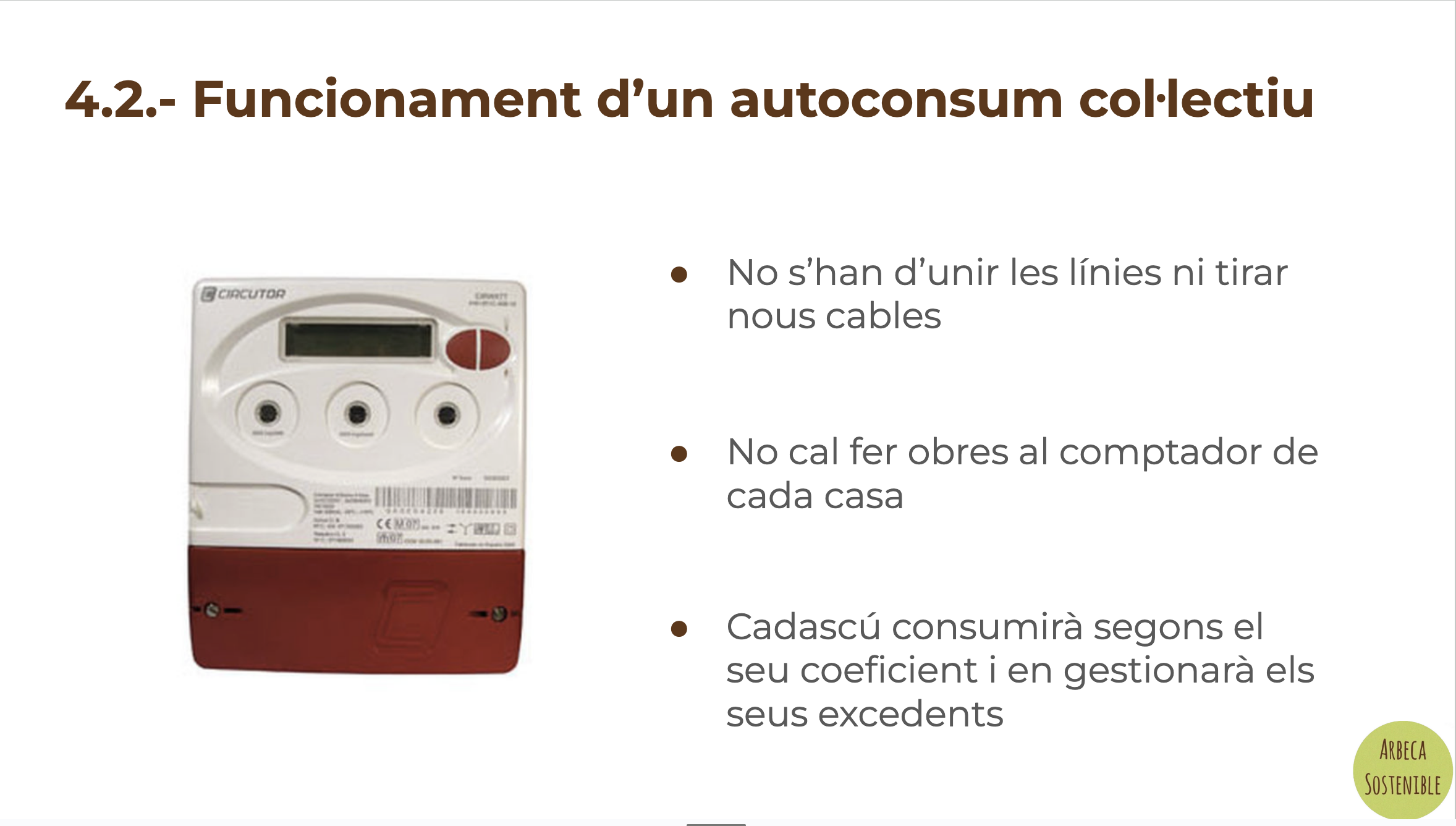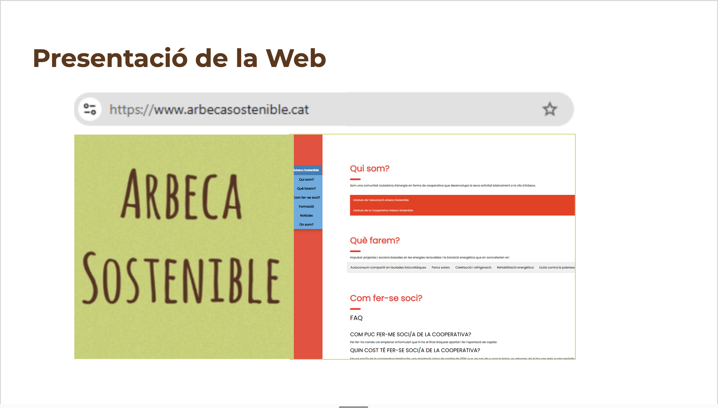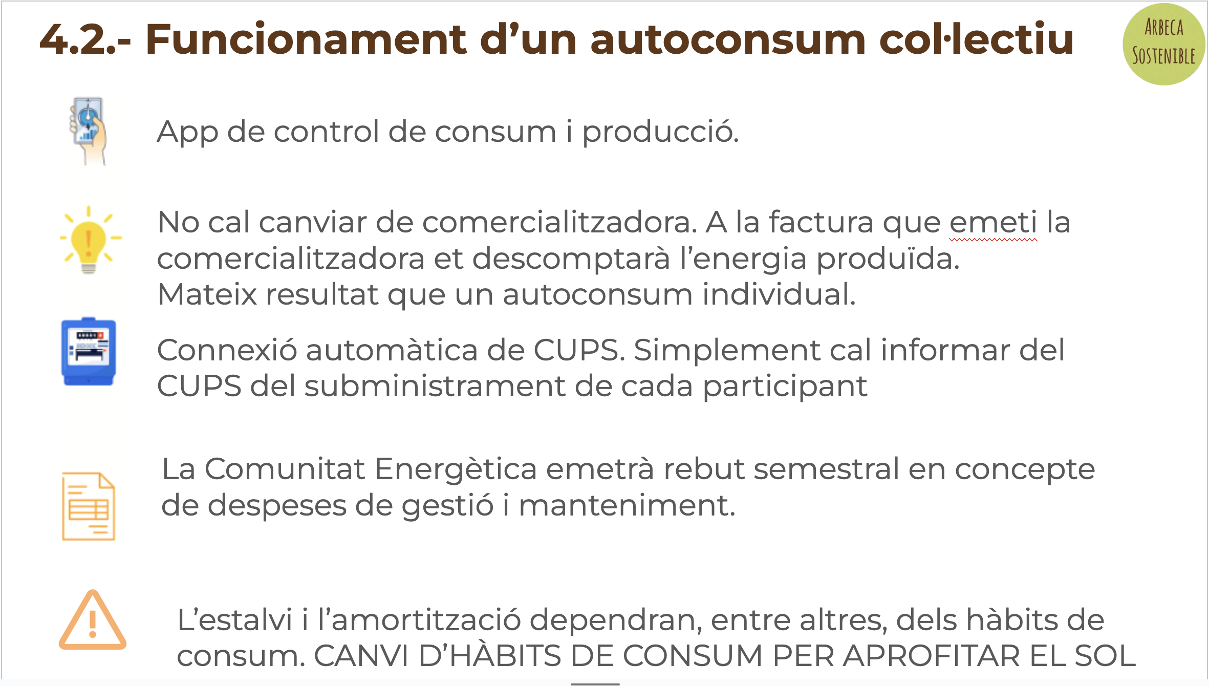 Som una comunitat ciutadana d'energia en forma de cooperativa que desenvolupa la seva activitat bàsicament a la vila d'Arbeca.