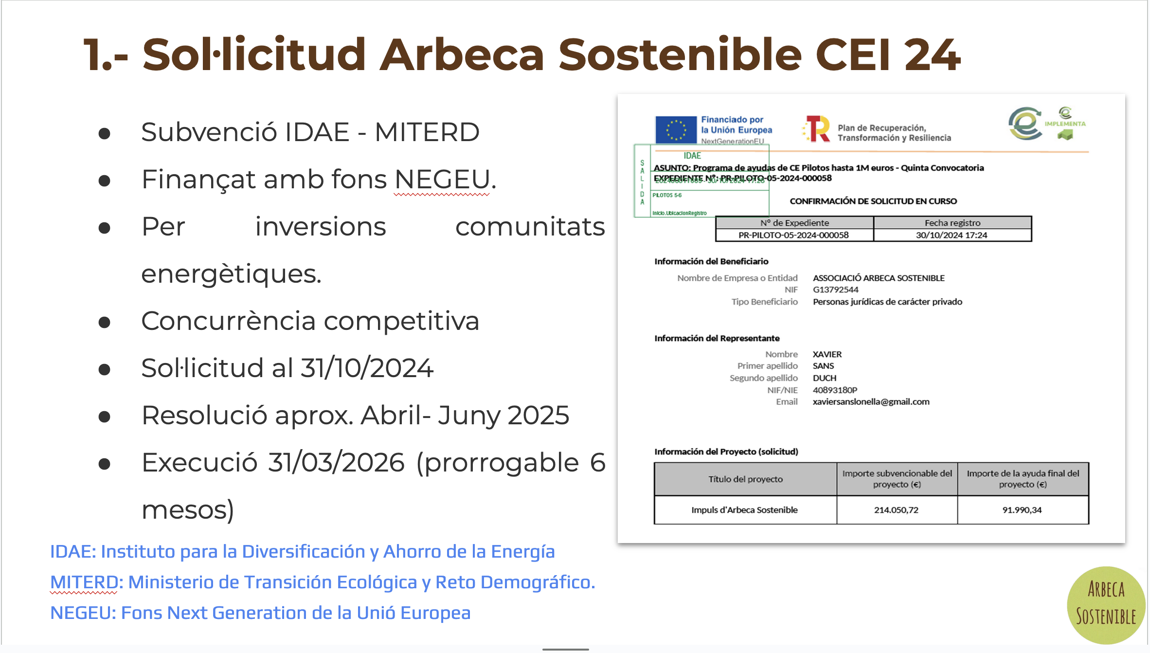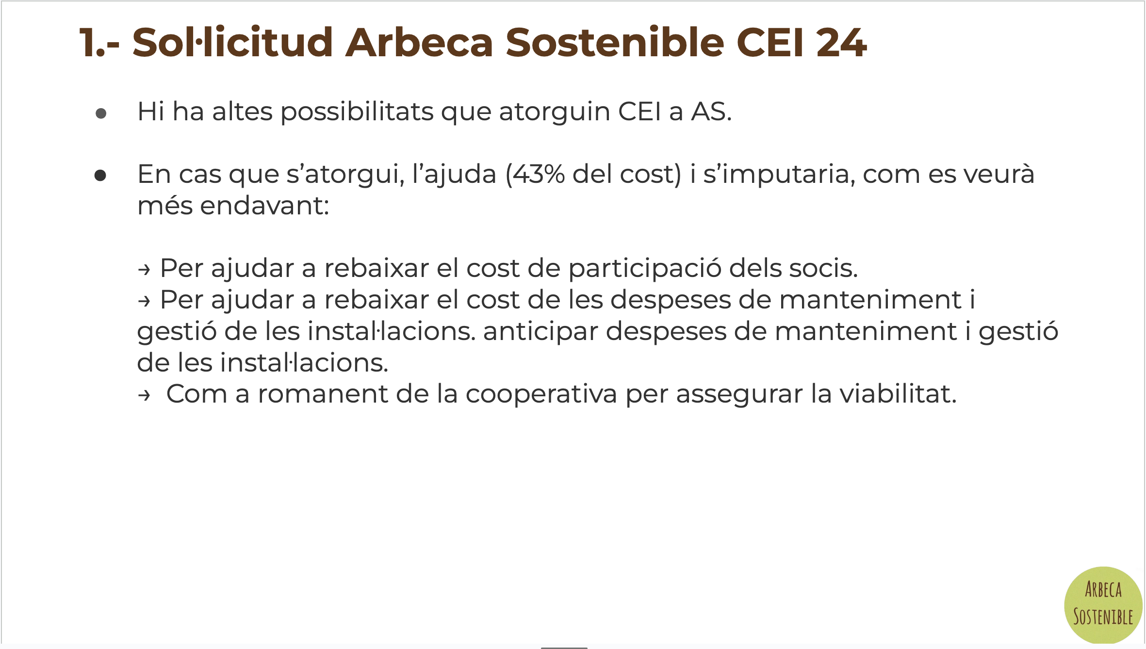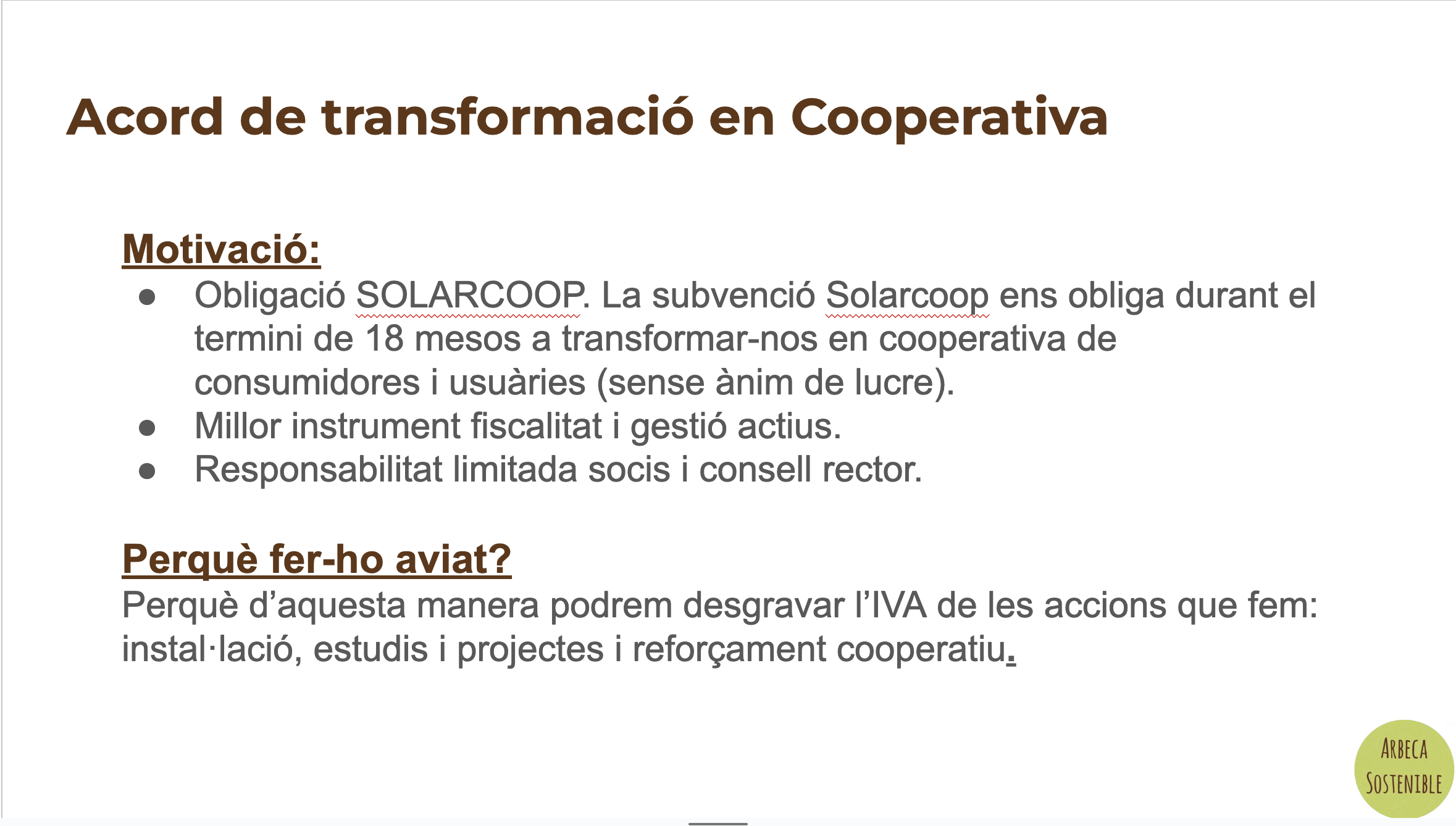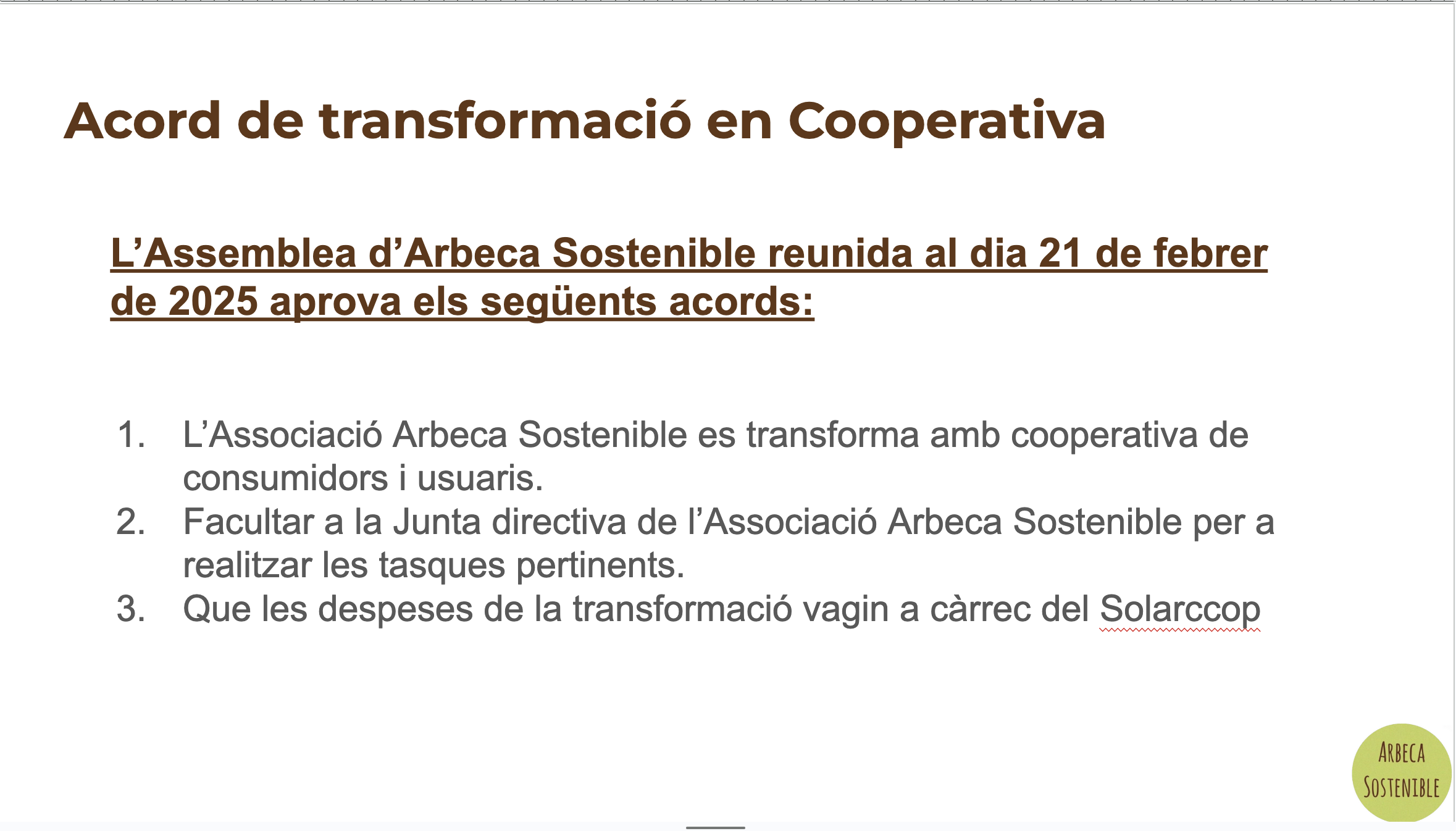 Som una comunitat ciutadana d'energia en forma de cooperativa que desenvolupa la seva activitat bàsicament a la vila d'Arbeca.