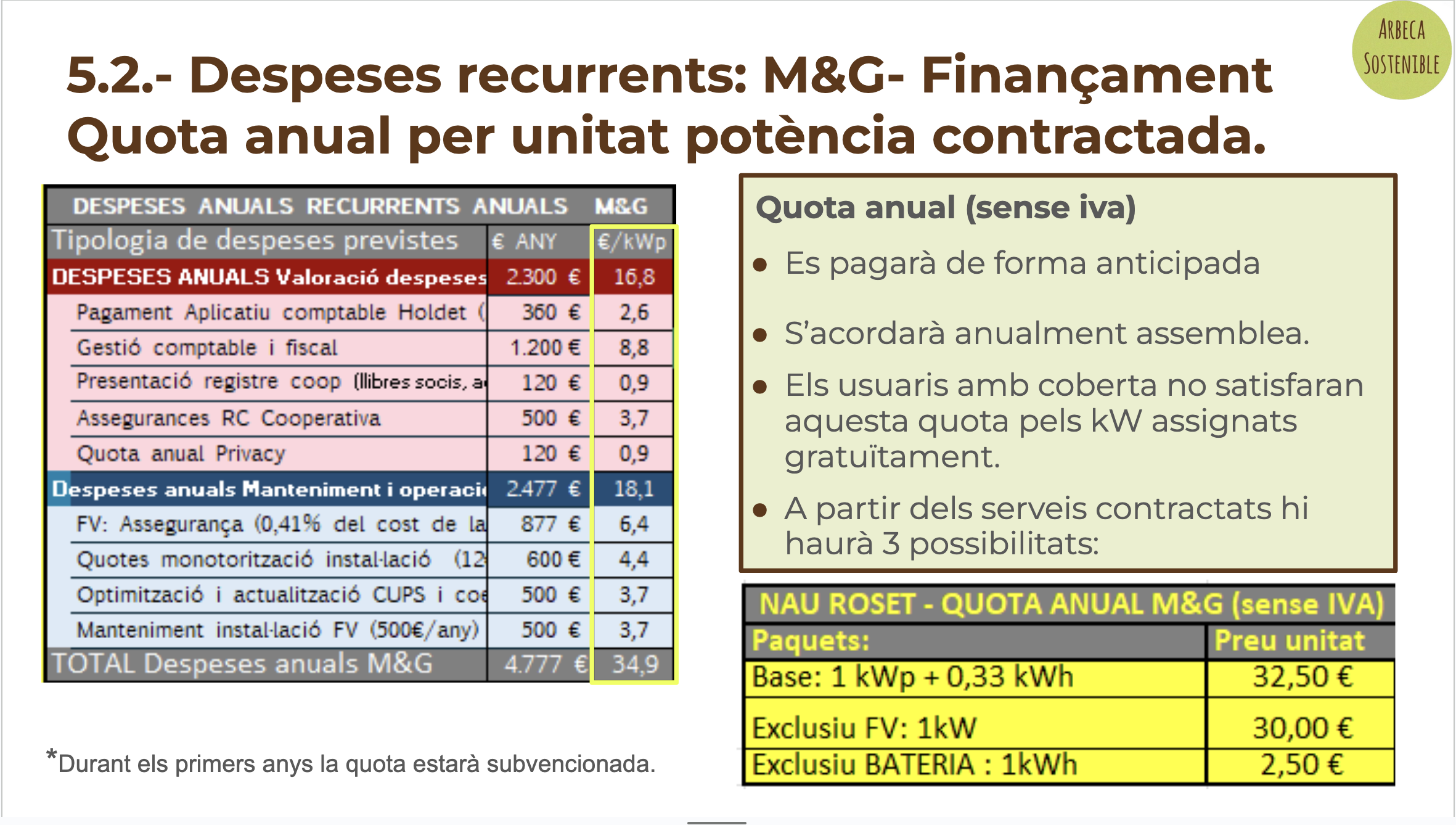 Fer-se soci/a de la cooperativa implica fer una aportació única de capital de 100€ que, en cas de cursar la baixa, es retornen. No hi ha cap més quota periòdica pel fet de soci de la cooperativa. Sí que hi poden haver quotes periòdiques per als diferents serveis que pots oferir la cooperativa